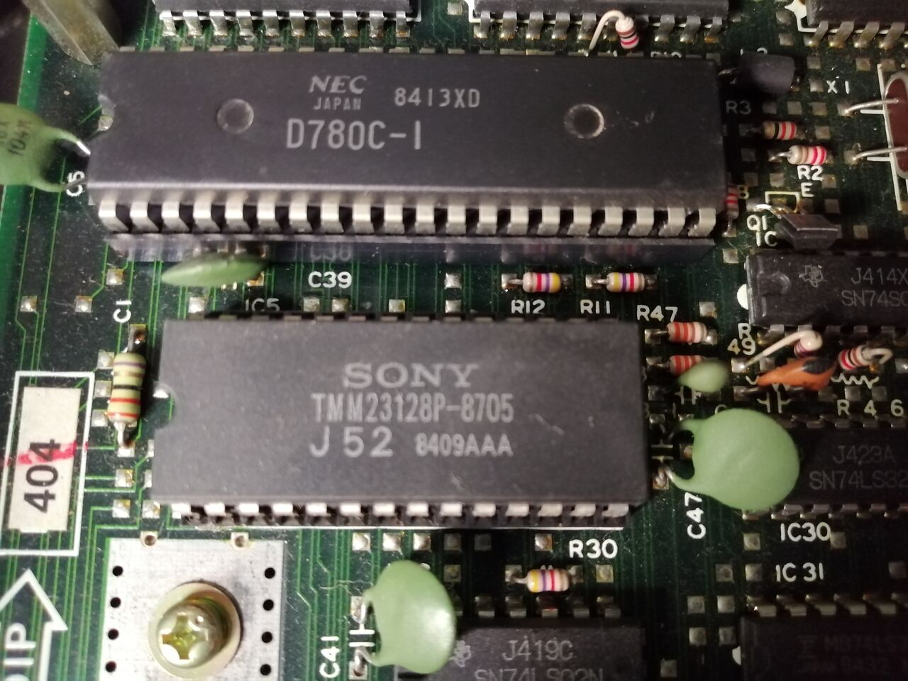 SMC-777はJ50、J51。SMC-777CはJ51、J52。J52はマスクROMでSONYのロゴはあるが東芝っぽい。J50,J51はUVEPROMだった。