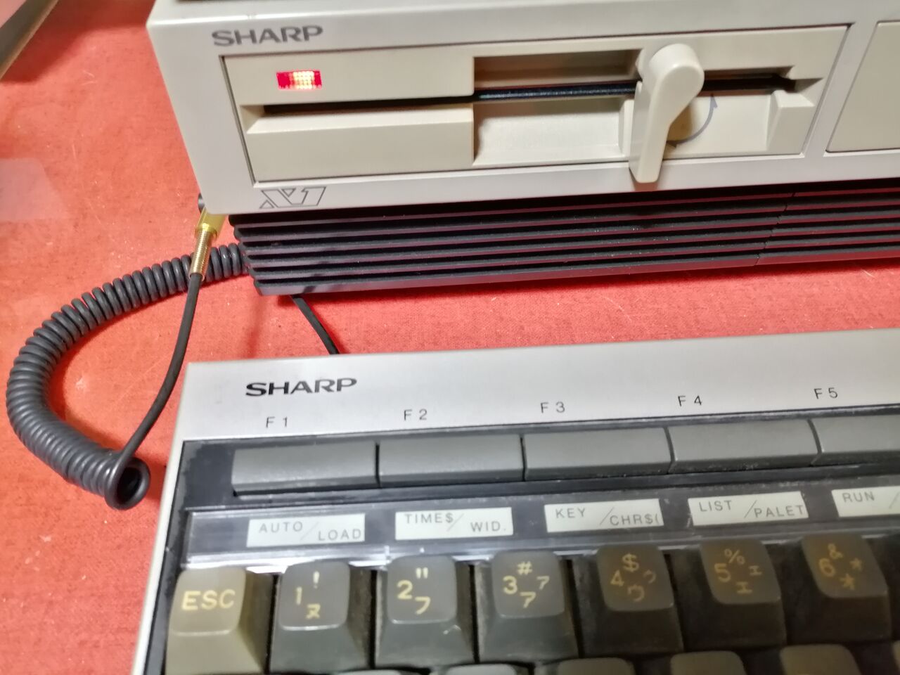 キーボードは初代X1のもの。本体へは3.5mmの3極プラグ。キーボード側には3Pのコネクタで繋がっている。ピンの対応は左から3-Sleeve 2-Ring 1-Tip 。