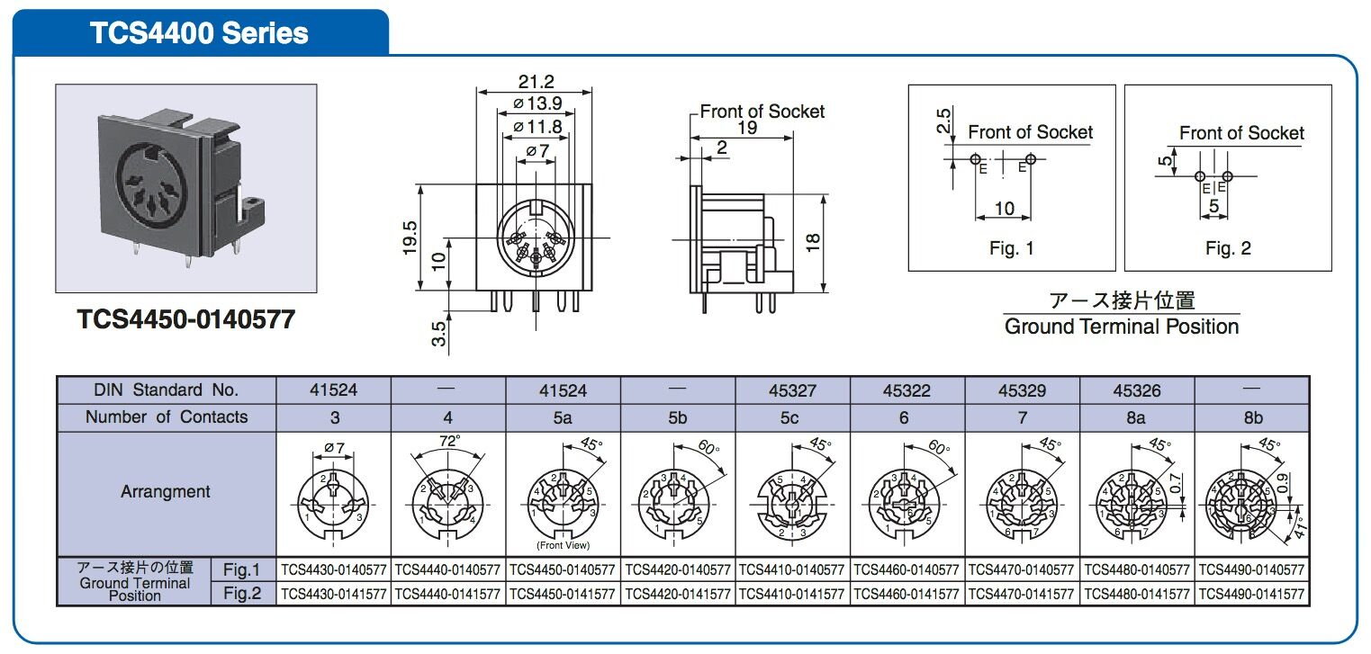 DINコネクタのピン配置。ホシデンの資料より引用。