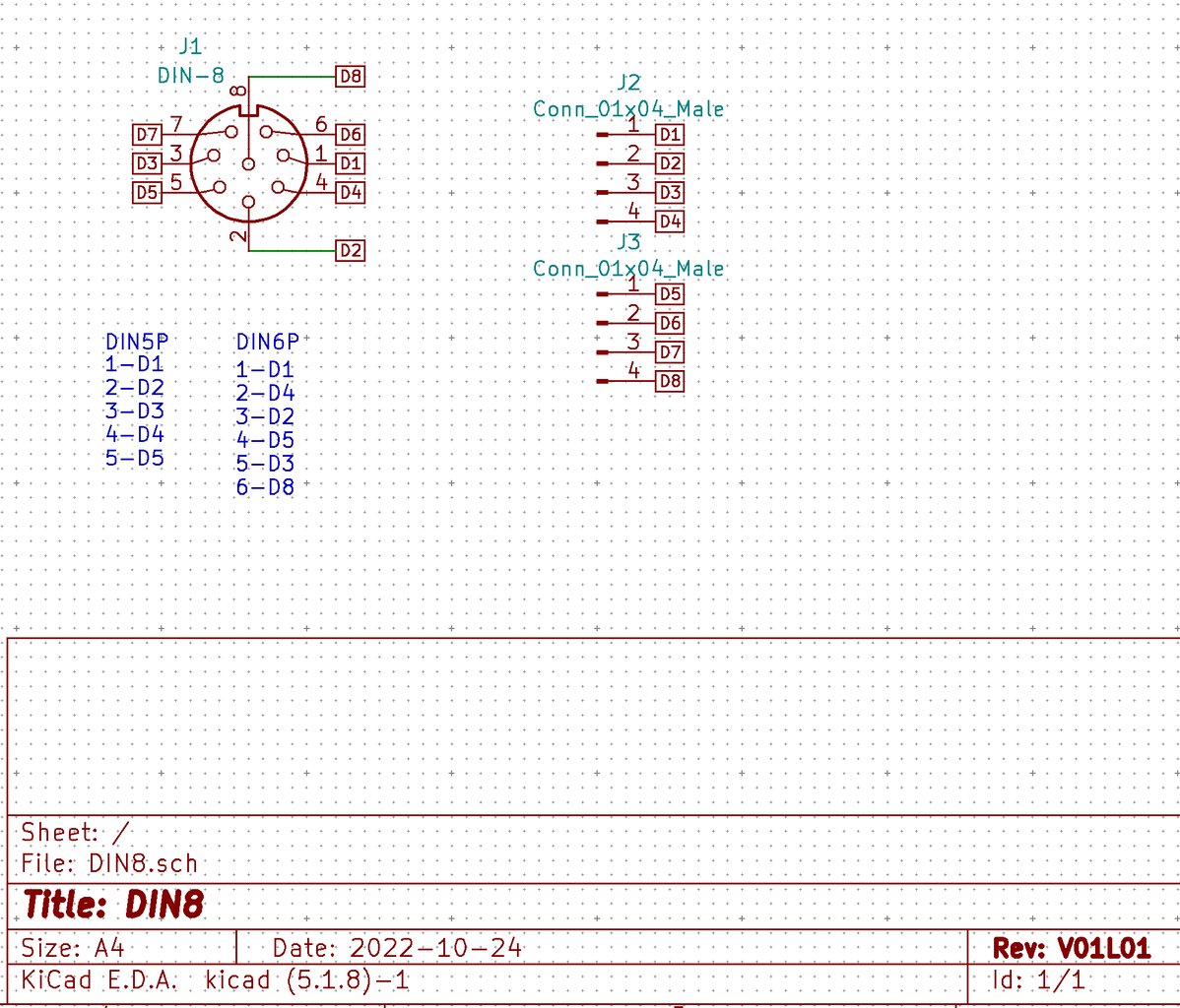 昔のパソコンなどで使われていた標準DINコネクタの変換基板を作りました。DIN8ピン、6ピン、5ピンに対応し2.54mmピッチで引き出します。