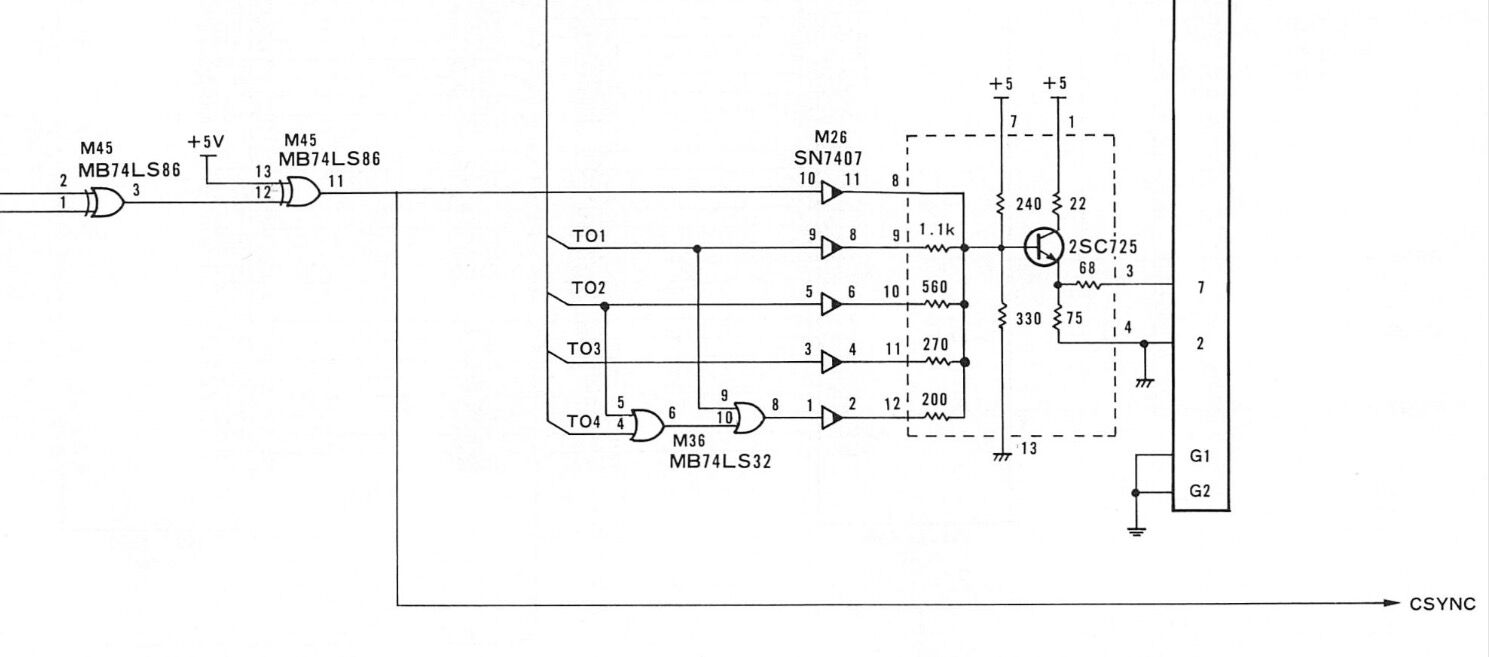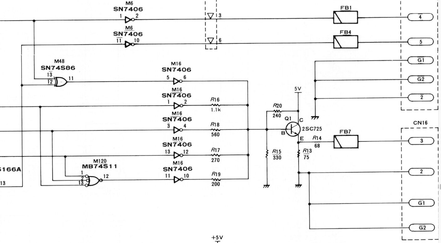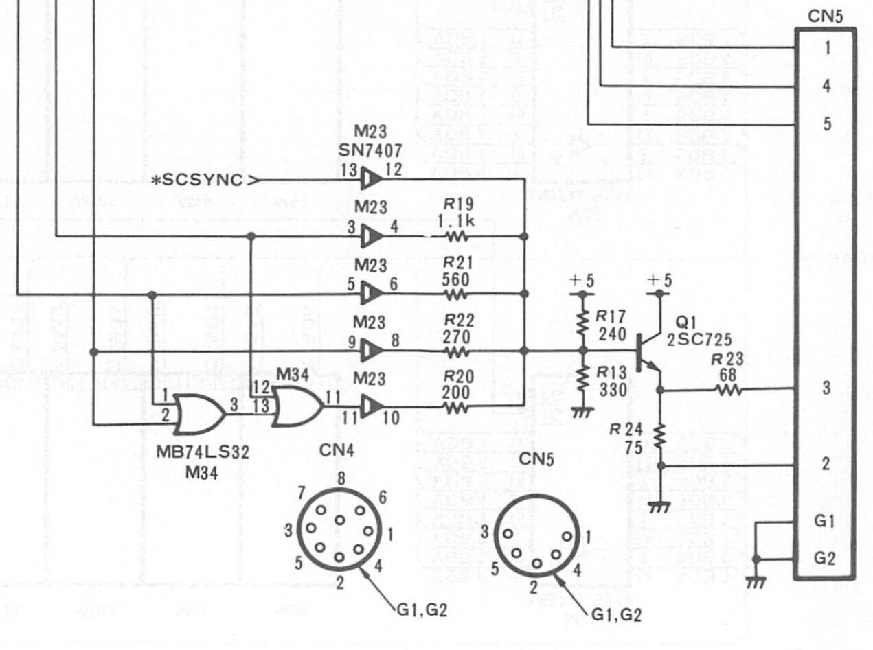 ・FM-77もB/R/G/I対応だがデジタルRGB出力はR/G/Bのみ出力。Iはジャンパオプション。この回路はG信号を無視してI信号を使っている。誤記だろうか。