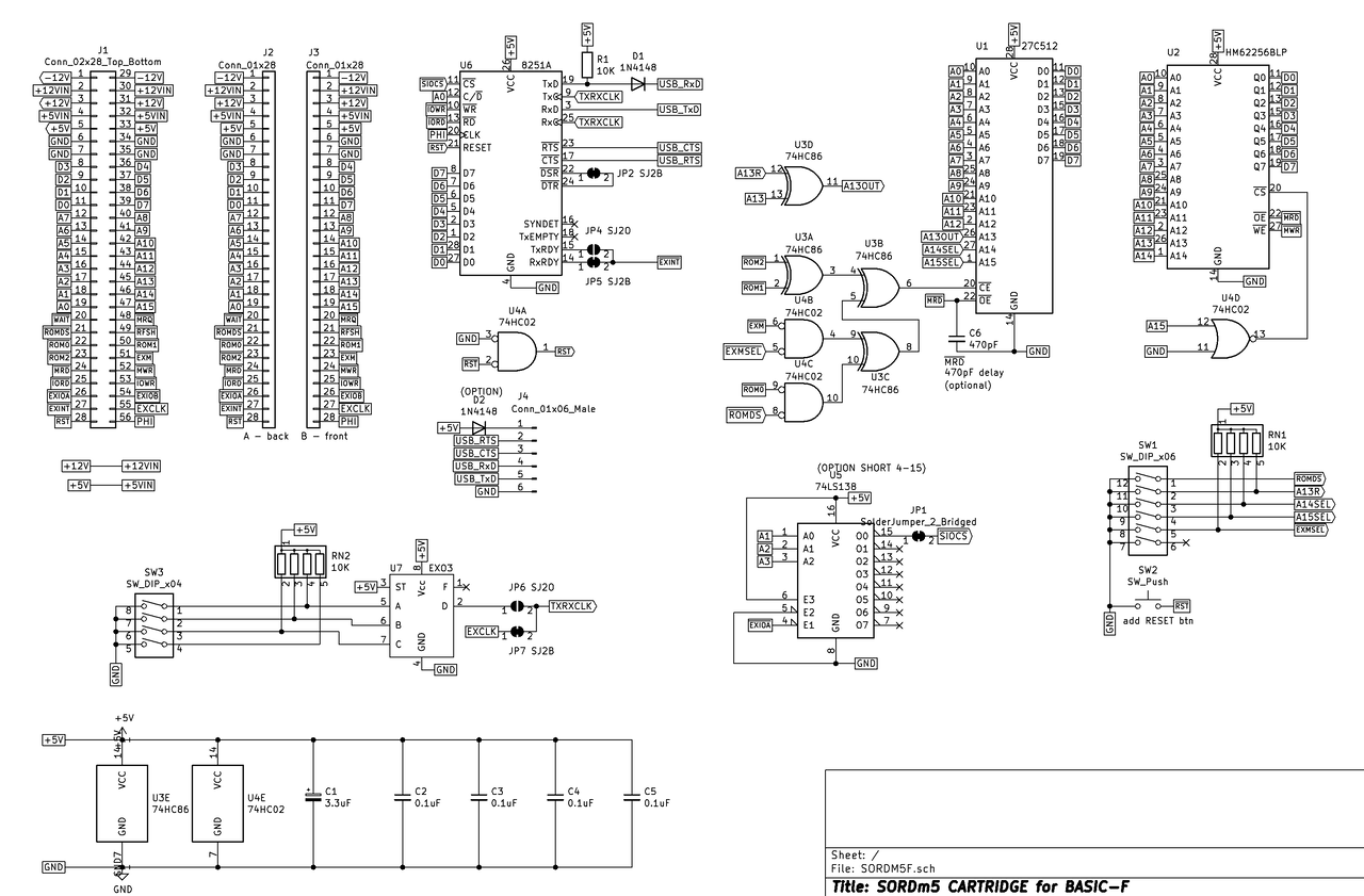 SORDm5C V01L02 SORD m5用ROM/RAMカートリッジ の改良版としてBASIC-FのROMイメージとシリアルインターフェースを追加したSORDm5Fを試作しました。