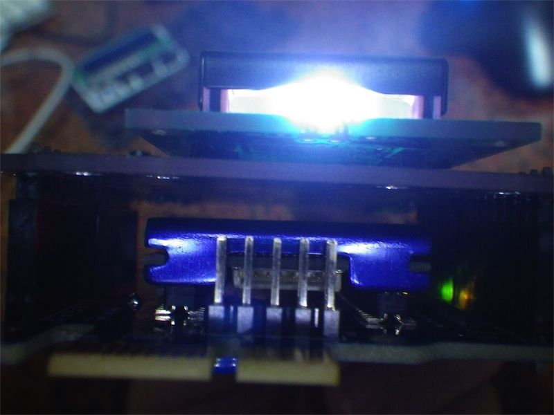 これをmicroSDカードスロットに挿入し、microUSBケーブルを接続して電源を入れるとオレンジ色のLEDが・・・ー ーと点滅する。まずはこれでOK。