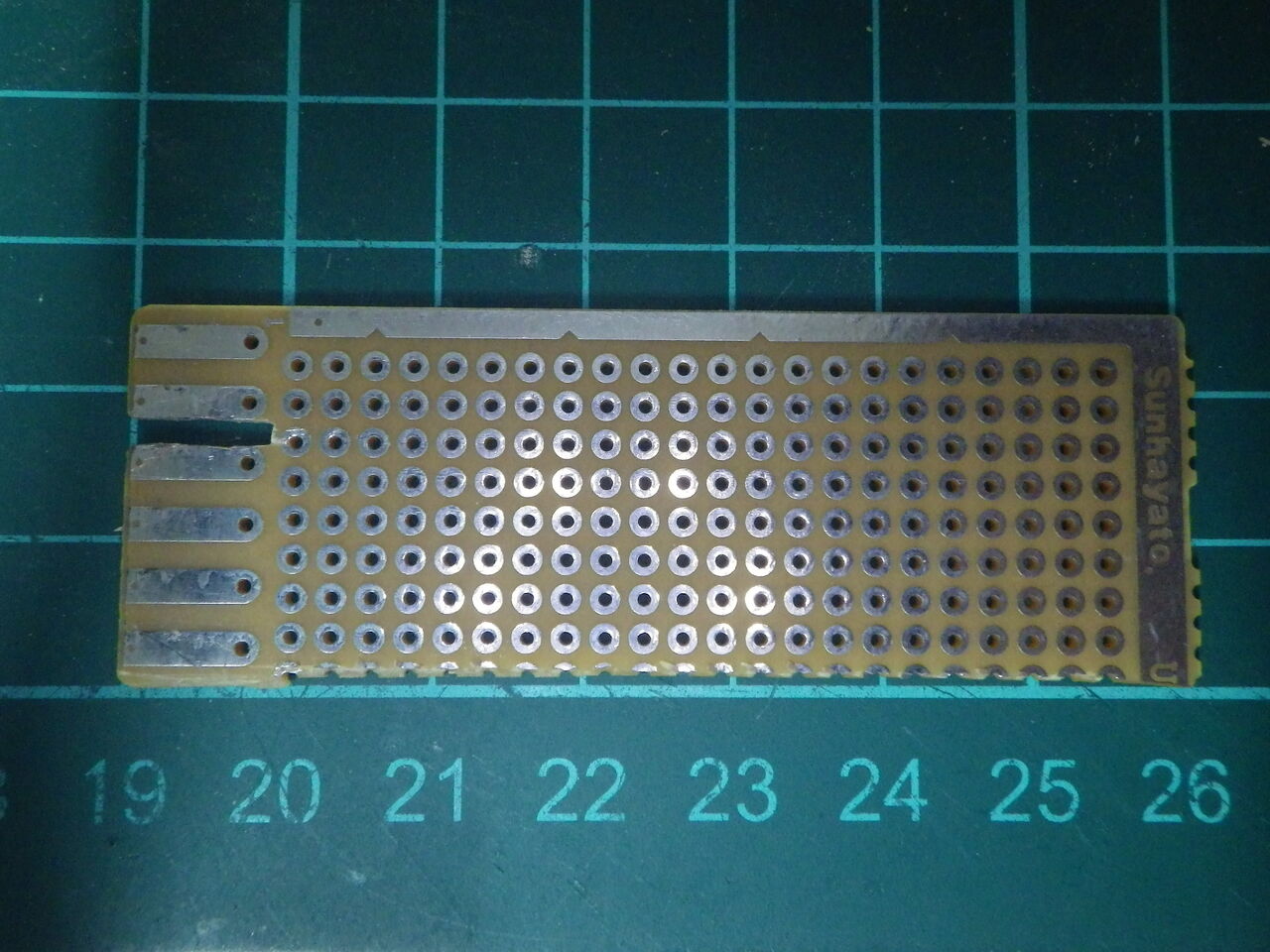 4mmピッチの片面カードエッジコネクタ6Pで2ピンと3ピンの間には溝がある。サンハヤトのUK-10P-67をカットし、溝はヤスリで加工した。