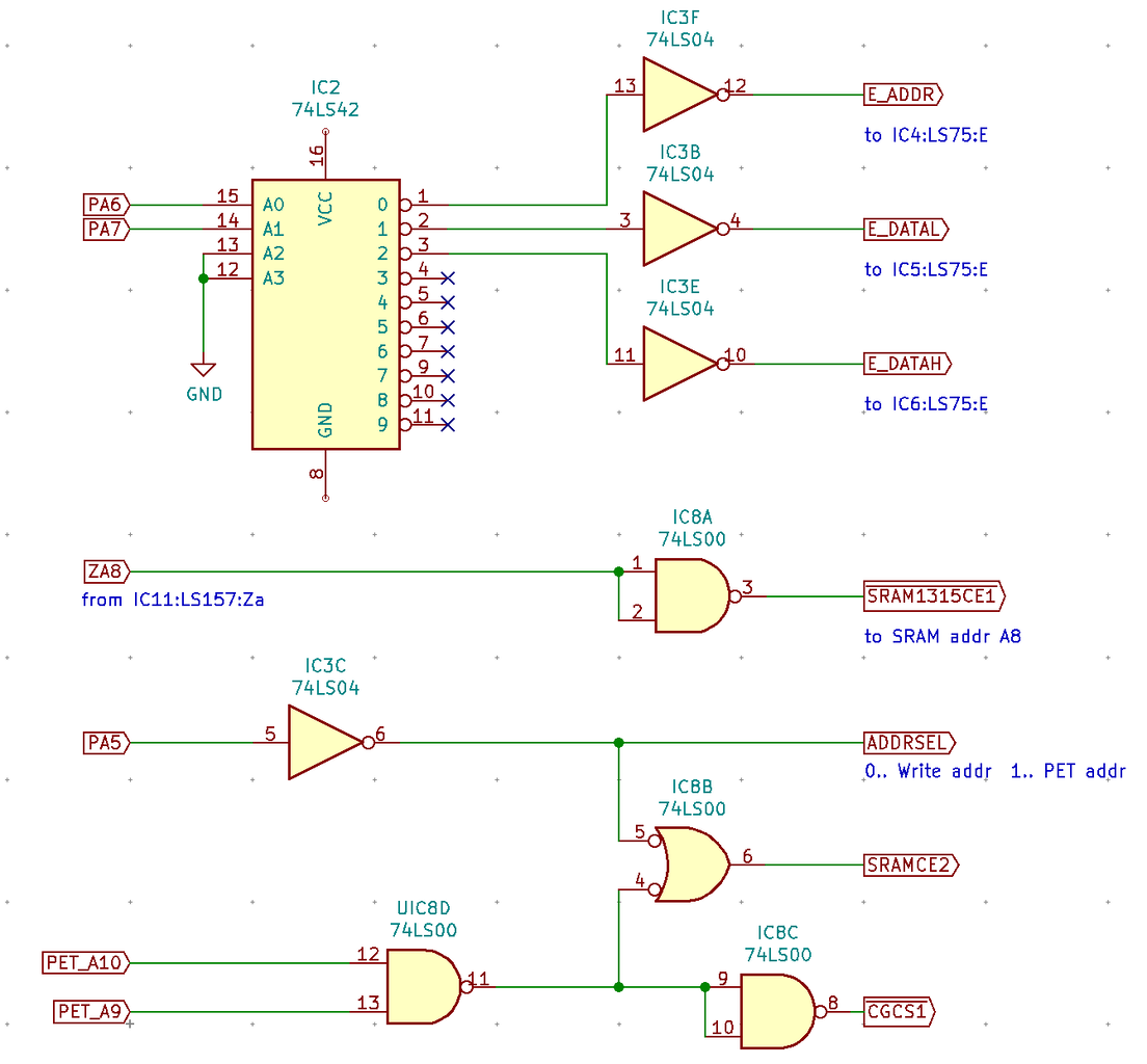 プリンタポート近辺。ここはLS74,LS32,LS125,LS374およびプリンタ用のコネクタを実装すればよさそう。今回はやらない。