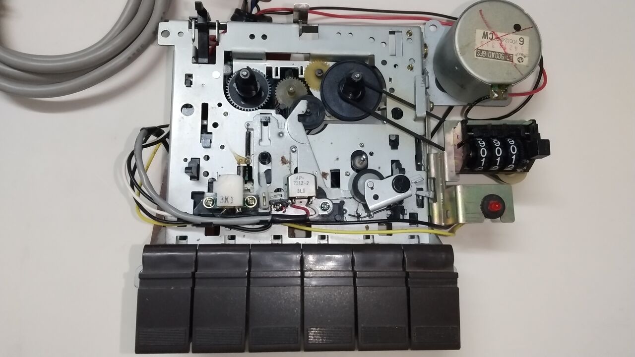 そういえばカセットのフタがEJECTボタンを押してもきちんと開かなかったのだが、この部分がEJECTボタンと連動してカセットのフタを押し上げている。ペンチで直してキャプスタン部分もカセットのフタも期待通りに動くようになった。ロード/セーブもOK。