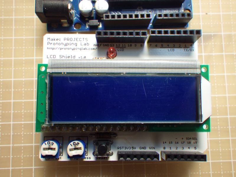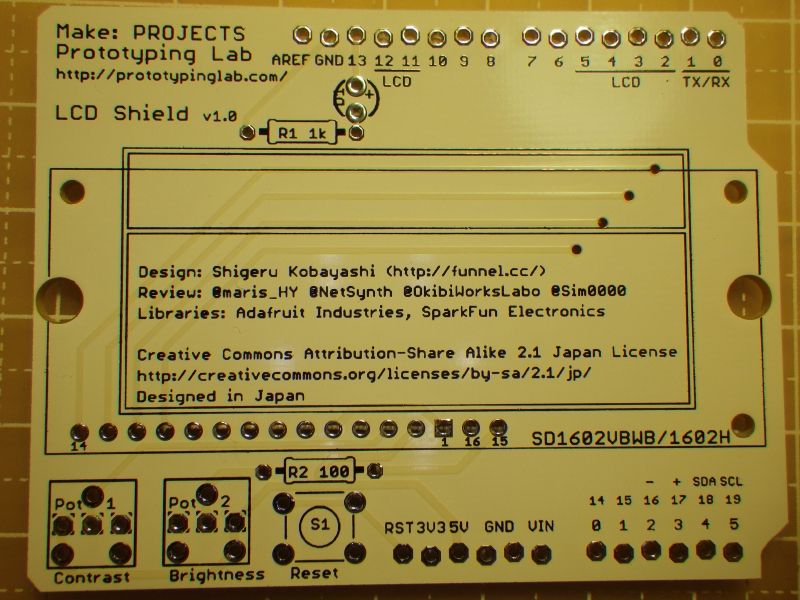 前回はブレッドボード上でLCDを使ったのだが、配線がびよんびよんしたままだとよろしくないのでLCDシールドキットを購入した。スイッチサイエンス扱いだがアマゾンからも購入できる。1980円。