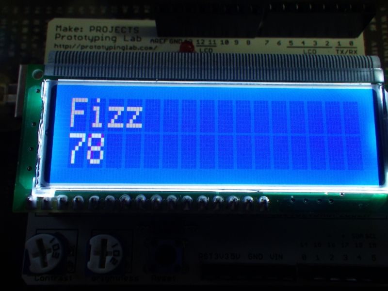 ハンダ付けは30分ぐらいで完了。これをArduino UNO R3に取り付けて確認。ピン配置は偶然にも前回ArduinoでFizzBuzzやった時と同じ配線だったのでそのまま実行できた。