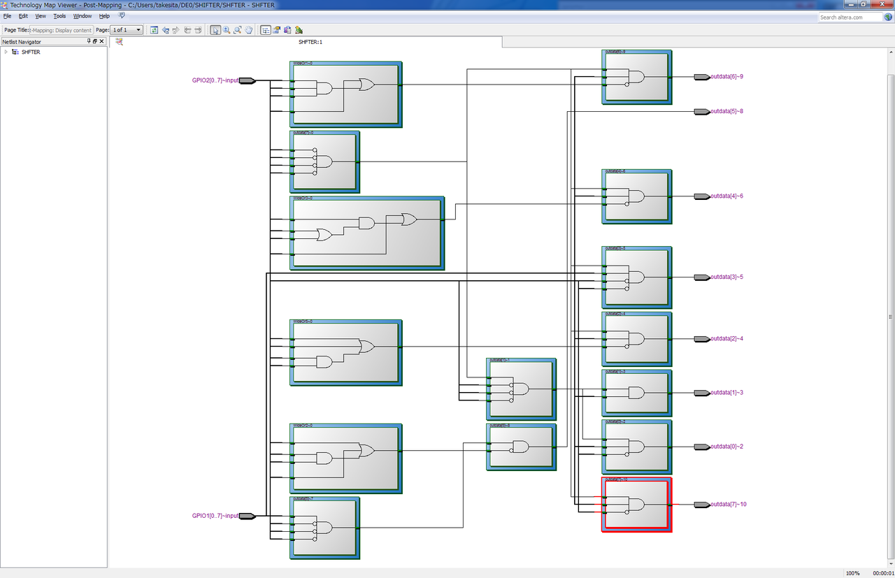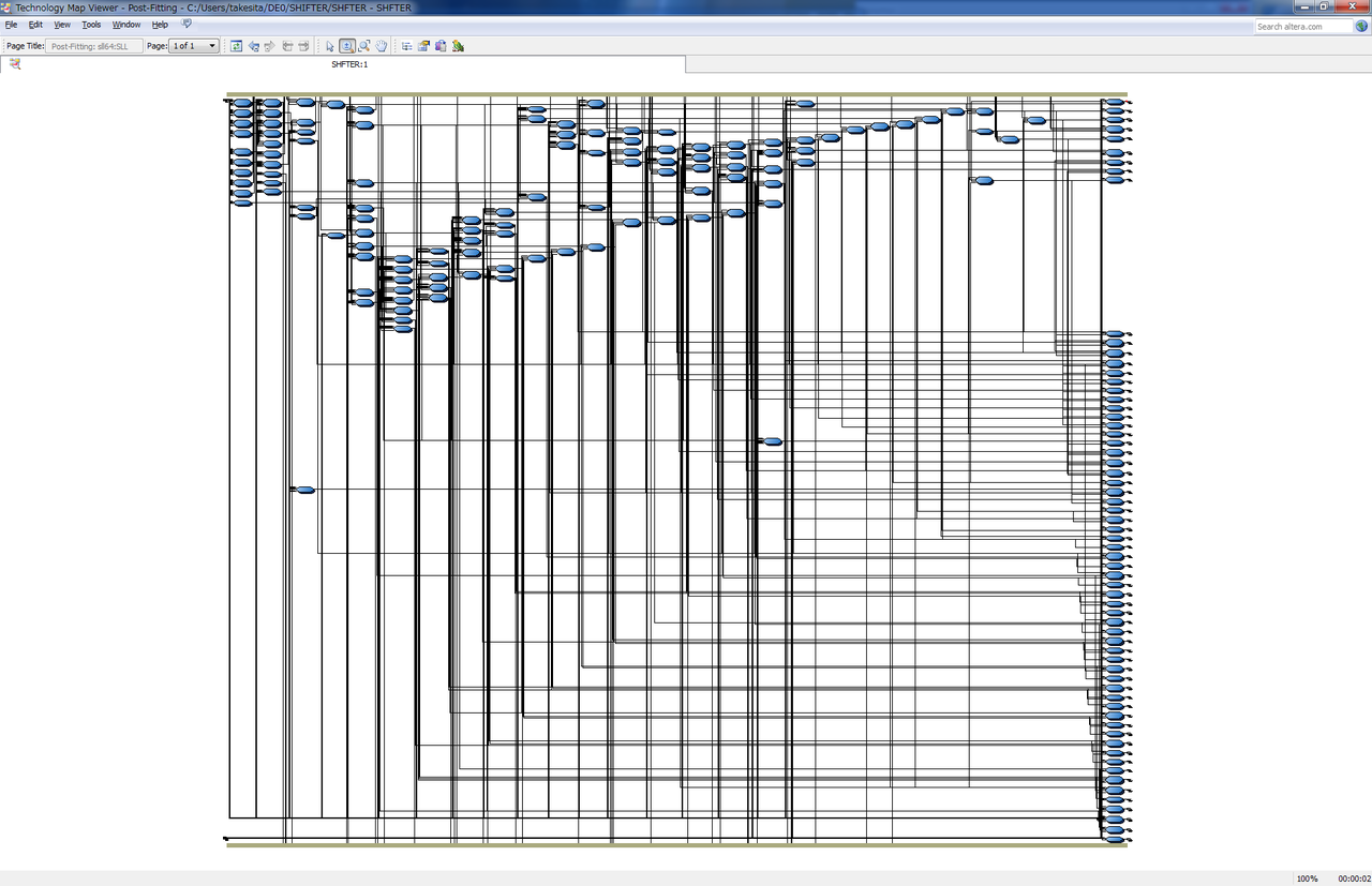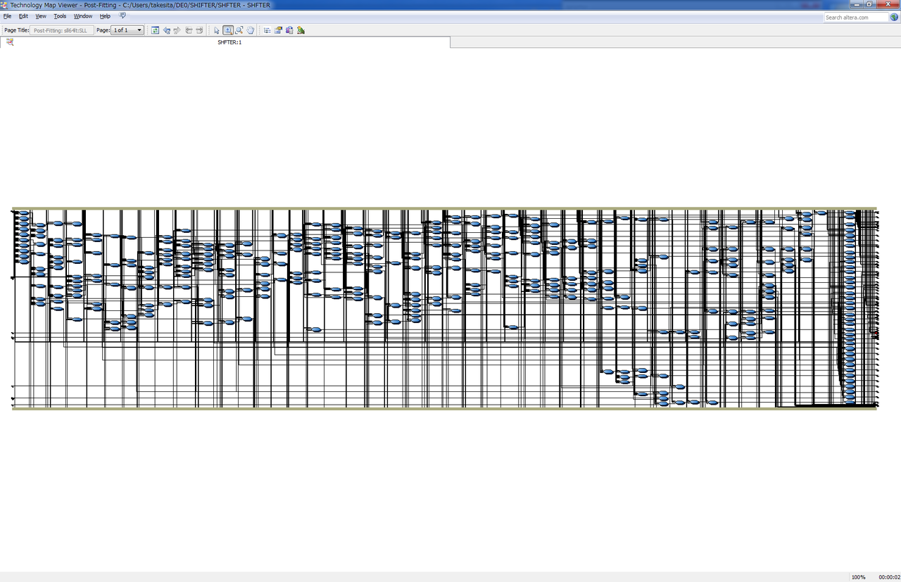 <<演算子でコンパイラに任せたほうが、LEがまんべんなく散らばっているようにみえる。LE自体のディレイよりも配線のディレイが大きいように思える。