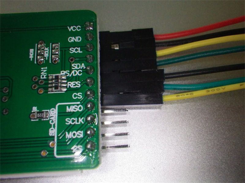 さて、 TFTのCSをENC0_A(42)、RS/DCをENC0_B(43)、SDAをSPIDOに接続、あとはVcc/GND/SCLK/RESETを対応する場所に接続してハードウェアSPI制御にする。