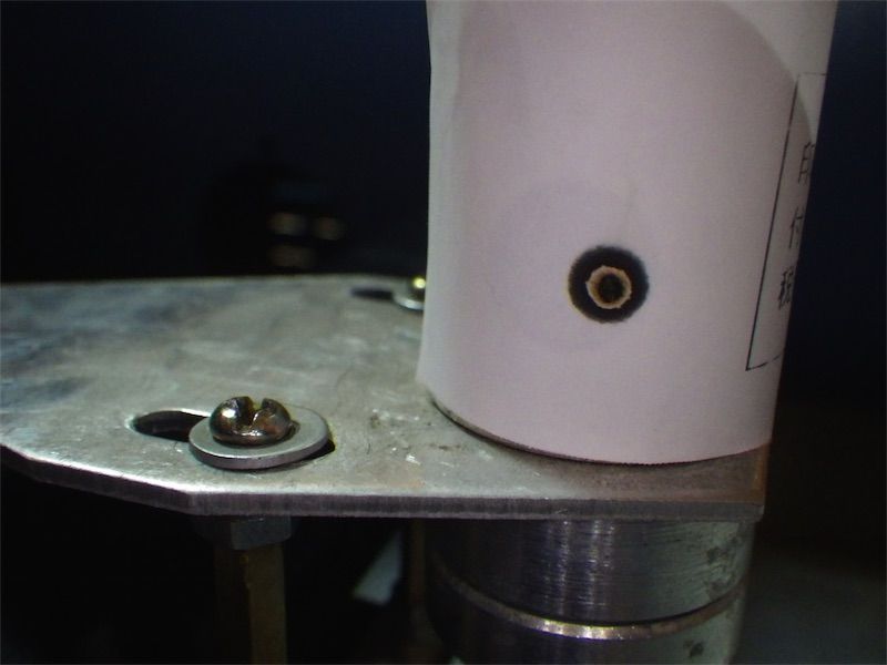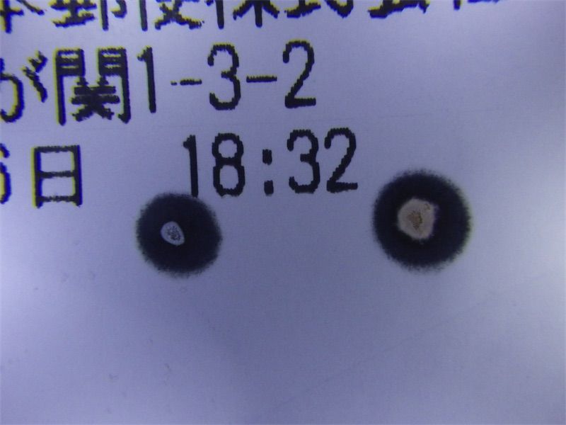 確認のため紙を巻いてテスト用ボタンを1秒押す。出力10%でこのくらい。