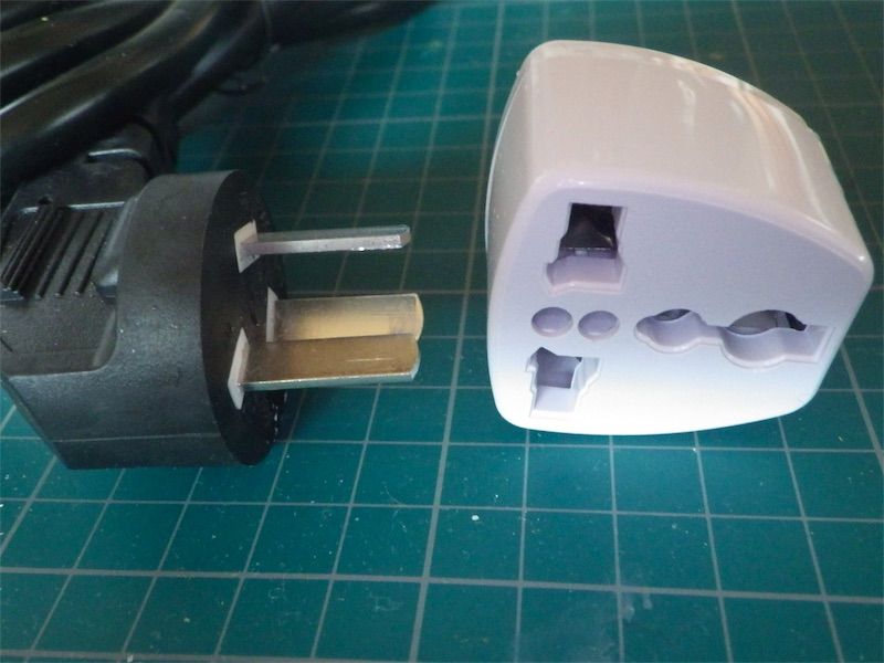 220Vの変換器は添付されていたが、付属ACケーブルのプラグが大陸仕様。マルチ変換プラグというのを購入した。
