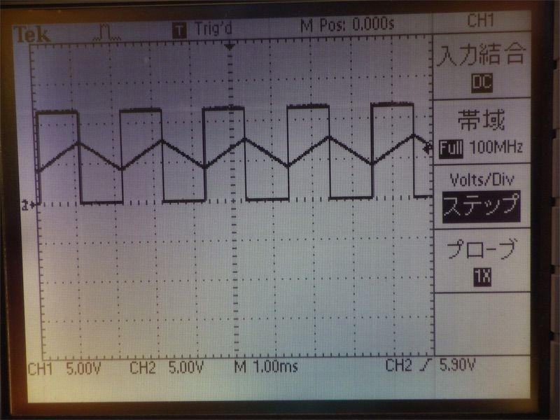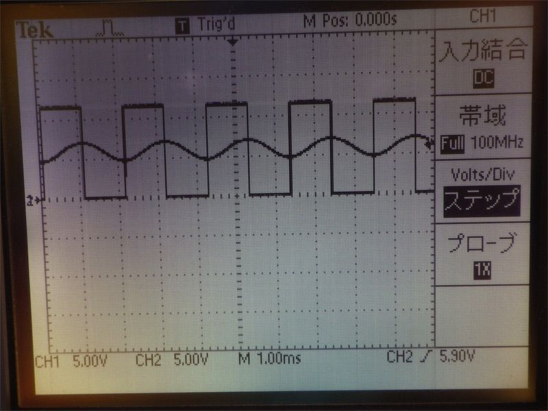 電源+12Vでの観測。矩形波は0V〜12Vのフルスイング。