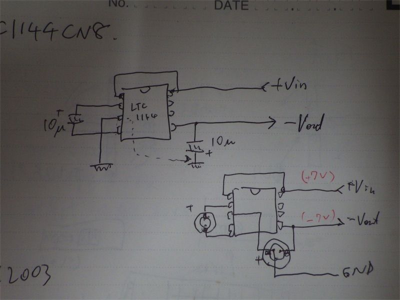 次に負電圧をLTC1144CN8で生成する部分。これは以下のとおり。