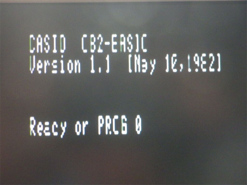 これはSONY CPD-L150にCASIO FP-1100を接続した例。文字の形はちゃんとしていそうだが表示が二重にだぶっている。これはCPD-L150がディスプレイ側に画面のバッファを持っていて、インターレース表示での奇数側、または偶数側のフレームが残っているようにみえる。