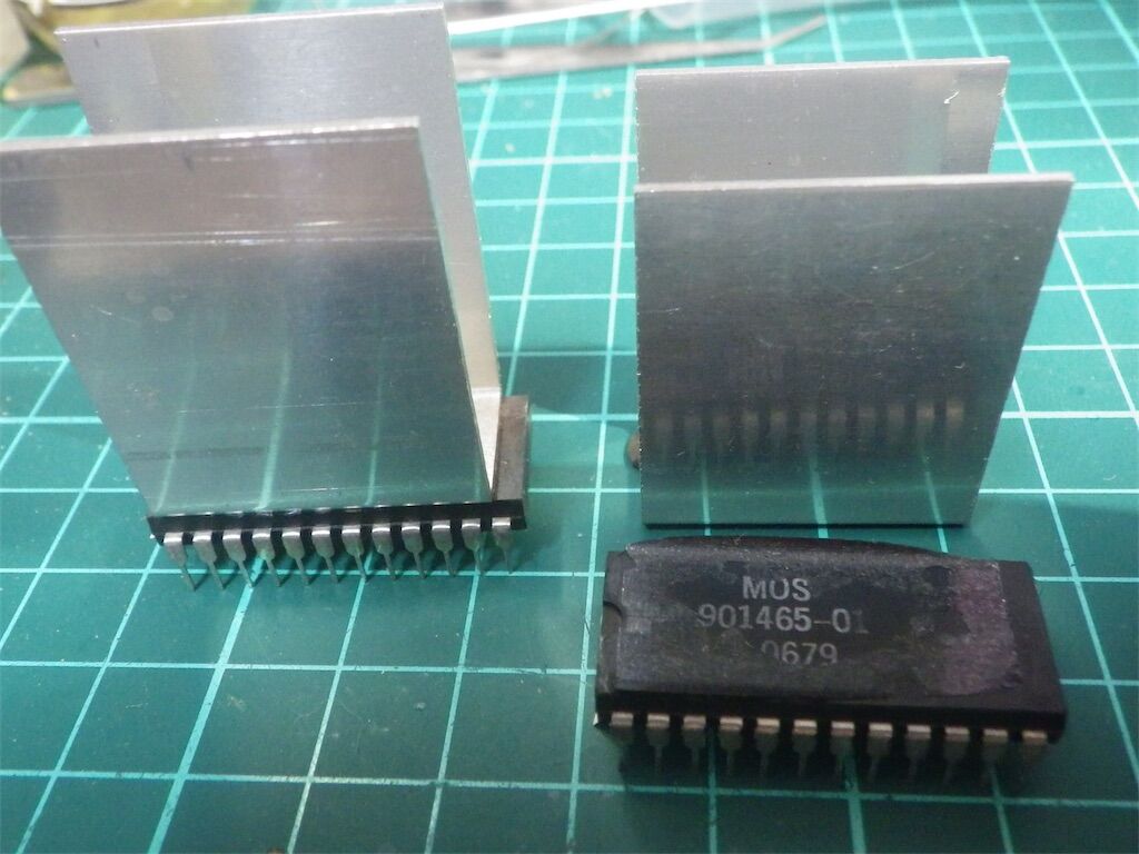 PET2001のROMはこのように大きなアルミ製の放熱板が接着してある。これはROM自体が発熱し内容が読めなくなるようなトラブル対策だと思われるが、実際手持ちのPET2001は基板上のROM付近が悪さをして起動しない。