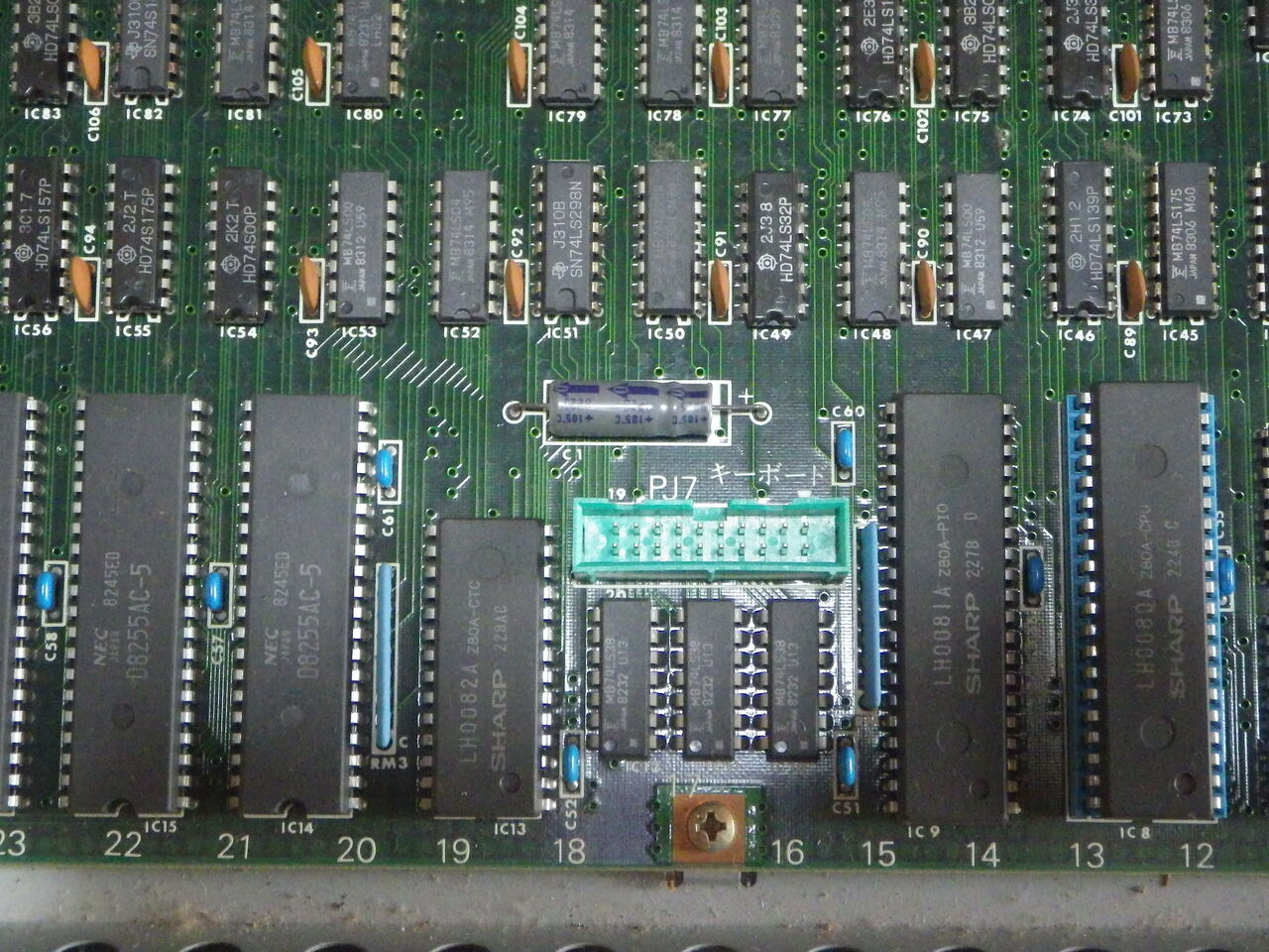 8255,8255,Z80-CTC,Z80-PIO。中央の20Pコネクタはキーボード用。