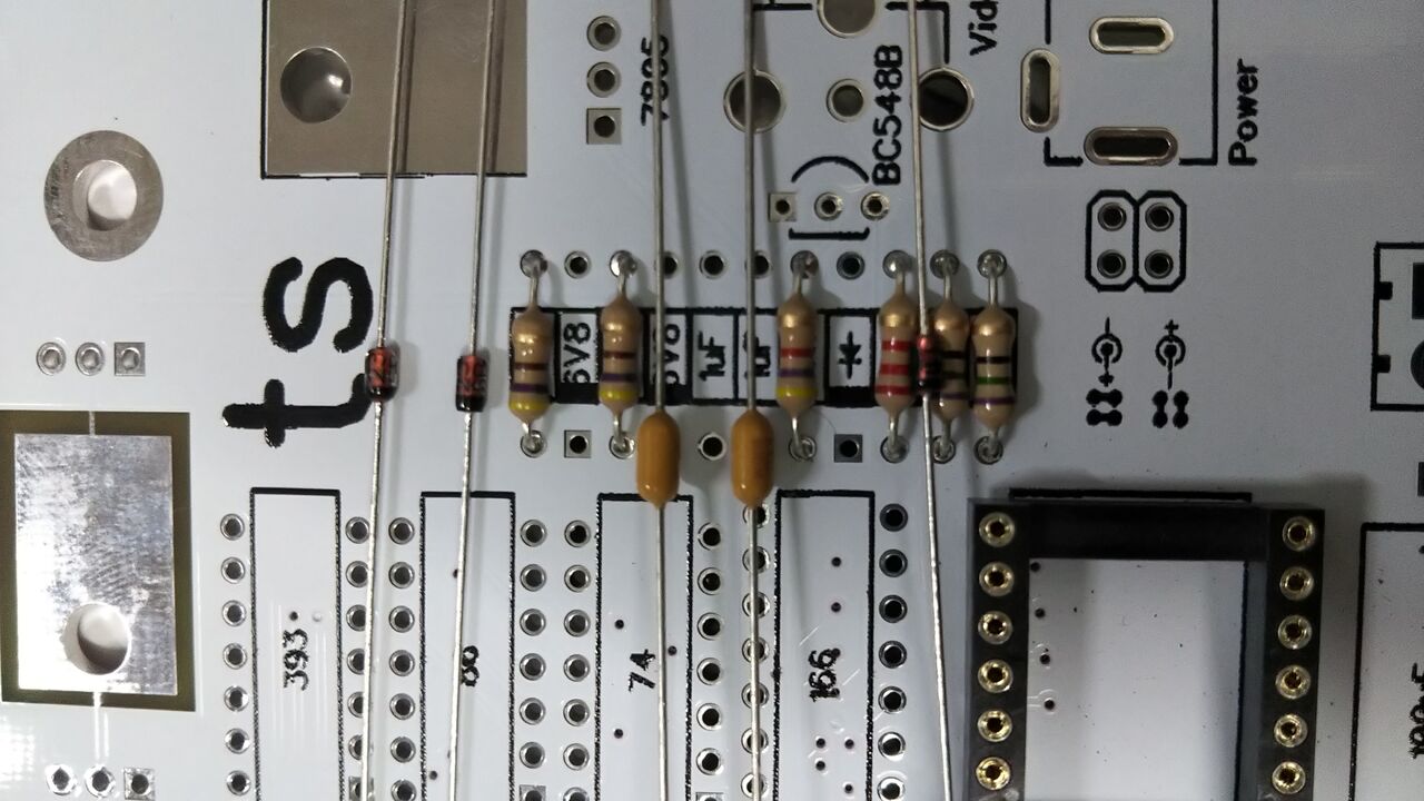 以下の左上の抵抗は1Kのシルクが塗りつぶされている。実際は470Ω。
