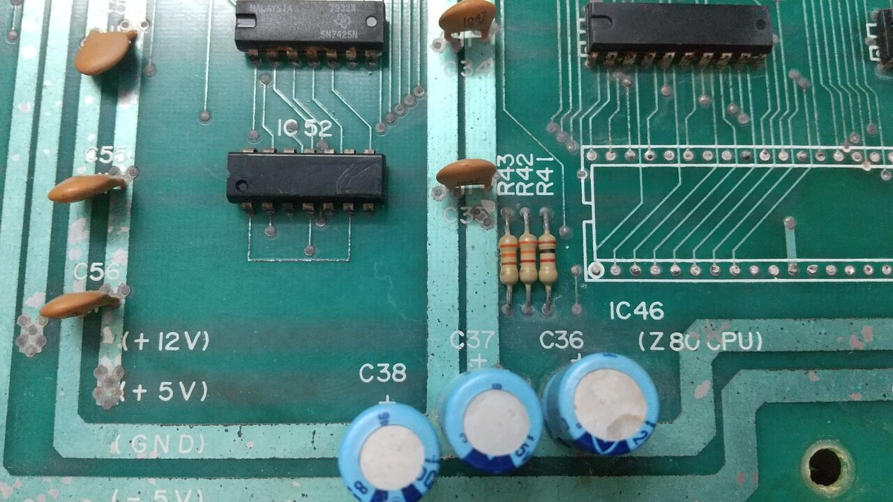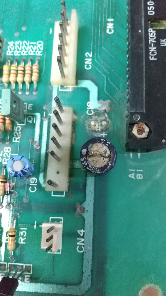 ぼちぼち水没基板の修理。電解コンデンサはどうもやばかろうと思うので交換することにした。