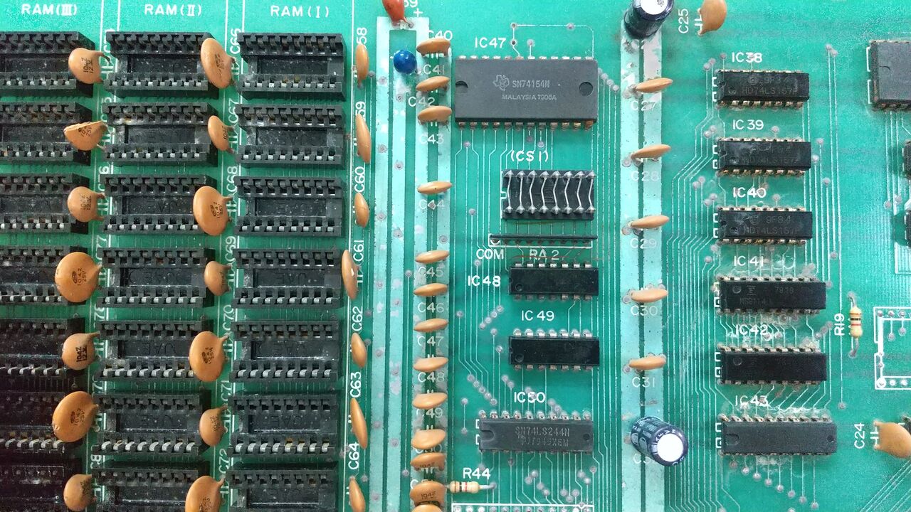 (1)IC18(8253)近辺 IC13はタイマIC555でカーソルキーのブリンク制御を行っている。