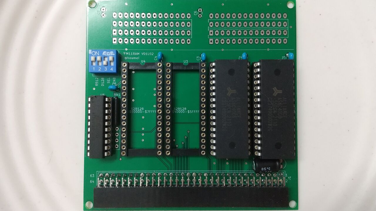 FM-11用拡張RAMカードの代わりとして使えるメモリボード。128KB/512KB SRAMを使用してFM-11のメモリ空間1MBをカバーできる。