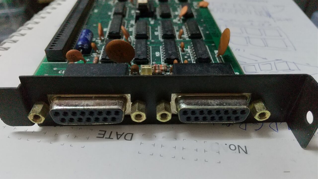 RS232CインターフェースのコネクタはDsub25ピンだがこのままではFM-11の拡張スロットからはみ出てしまうので必要な信号線だけ出したDsub15ピン(メス)コネクタが採用されている。ただこの配列は独自なのでそのままでは使えない。中古で入手したのであったはずの変換ケーブルも失われている。