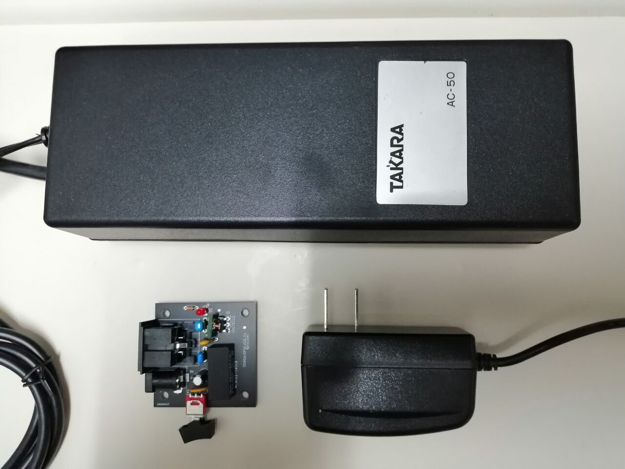 1980年代と較べて現代のスイッチング方式5Vアダプタや小型DCDCコンバータのおかげでこのサイズ。