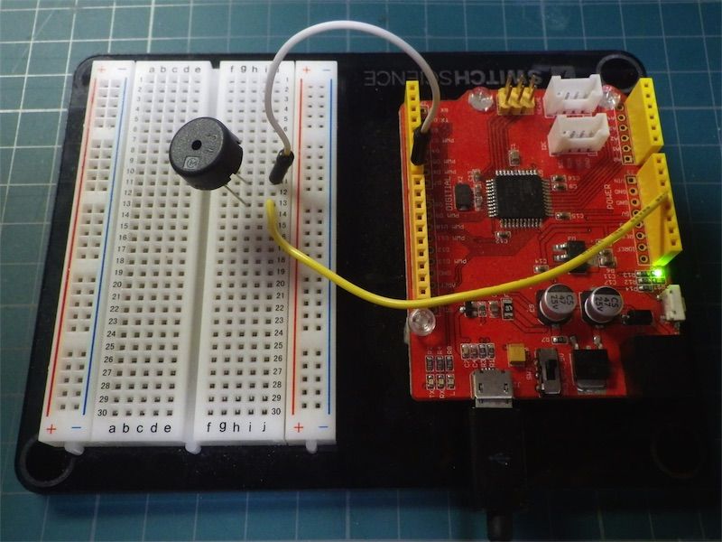 圧電ブザーを端子に挿しながら確認する。D0〜D13、A0〜A5で音がでた。