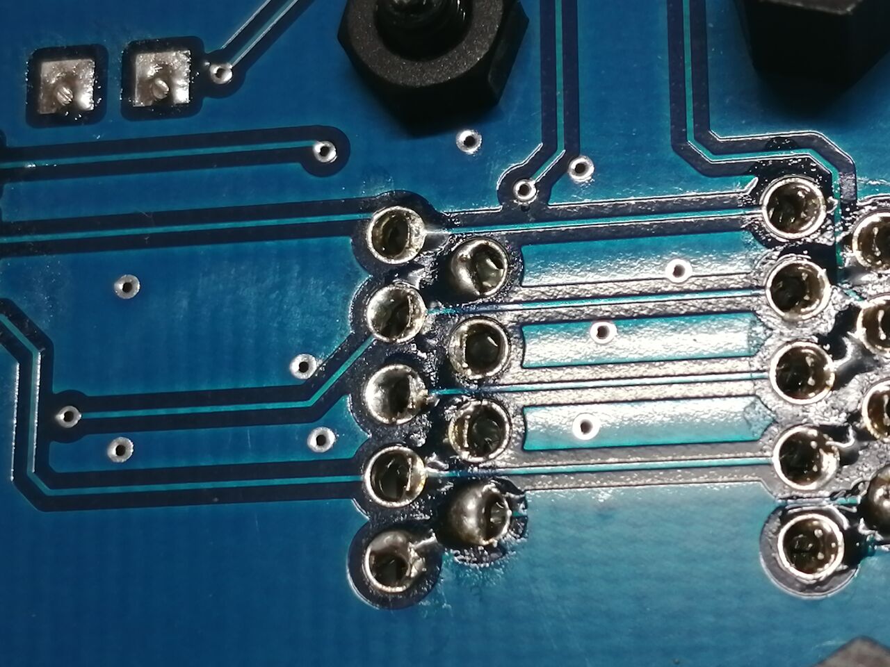 実際に挿入してみるとDsubコネクタ両端は6mmスペーサが適合、もう少し押し込めることができるくらい。ハンダ付けは端子間の内側からするとよい感じ。