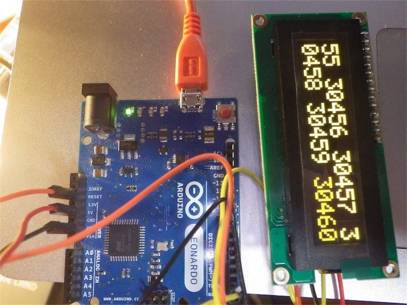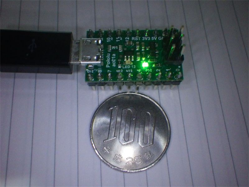 Teensyというのが書いてあるが、Teensy2.0は32U4を使ったボード。ということでやってみたら動いた。MsTimer2での書き方がFlexiTimer2でもそのまま使えた。