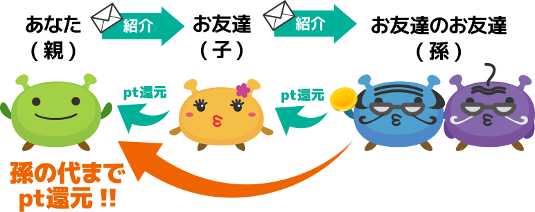 また、友達の友達のポイントまで還元が可能。(3ディア)