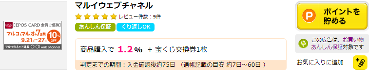 ちなみに、マルイウェブチャンネルを取り扱っているポイントサイトを探してみたところ、ハピタスが一番還元率が高いとのことが判明し、早速利用してみました。