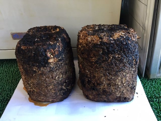 先日ザラメチップのお客様のところから廃棄分の菌床のブロックを頂いてきたようで、温かいところで