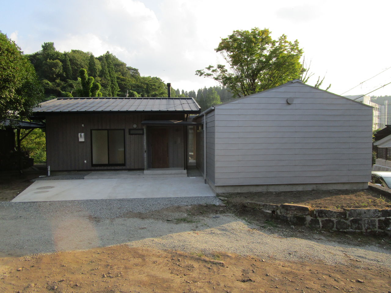 川沿いのL字型の平屋で、外観はグレーでかっこいいに出来上がりになりました!