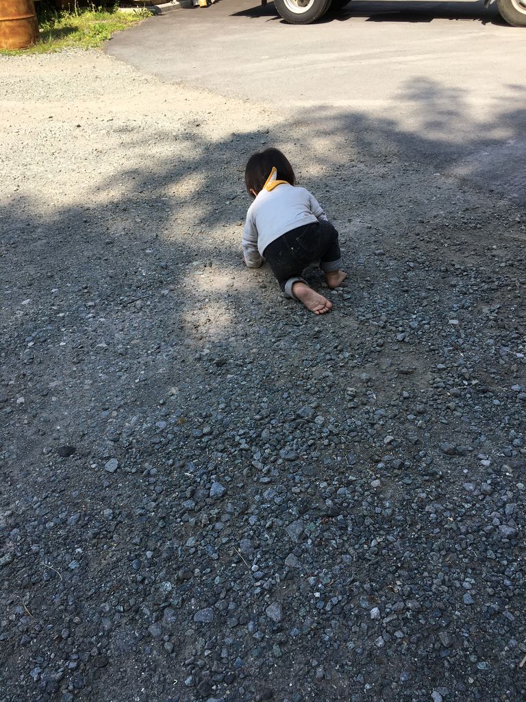 2017年05月29日 石遊び こんにちはー!今日はとってもいい天気🌞&心地いい風が吹くので気持ちいいですねー😊✨ うちの次男は一緒に仕事に連れて来るのですが、ずっと中にいると外に出たそうなので、たまーに外で遊ばせるのですが、彼の好きな遊びは石遊び! ずーっと砂利をさわさわと触ったり、掴んでは落とすの繰り返しの遊びが好きなようです😅 もちろん服は真っ黒になりますが...😭