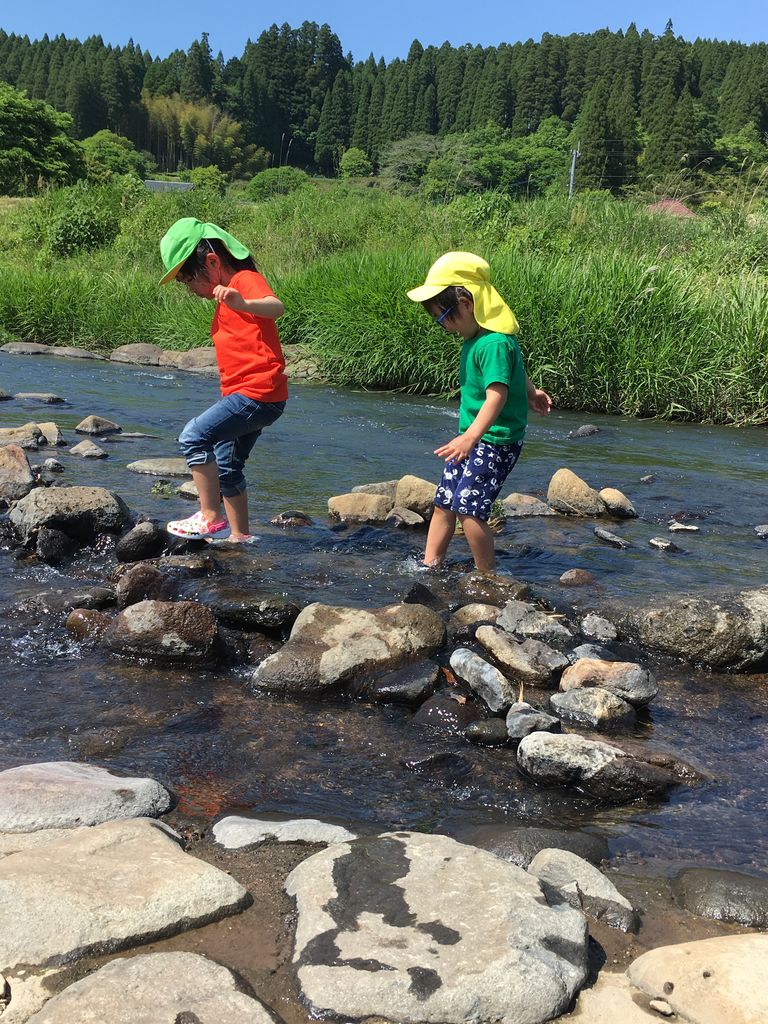 2017年05月20日 暑い☀️ こんにちは!純子です 昨日今日、とっても暑かったですねー! 夏みたいでした 昨日は子供達が通ってる保育園の、親子参加遠足でした! 午前中だけでしたが、子供達と楽しい時間が過ごせて、朝からがんばって作ってきたお弁当🍙を食べて解散でした 帰って、大人の私達は疲れて休みたかったのですが、子供達はまだまだ遊び足りないようで、暑かったのもあり、水遊びしたい!との事で近くの浅い川に遊びに行きました 最初は足だけでしたが、最後には全身びしょ濡れになって遊んでました 楽しくて、ヘトヘトの1日でした