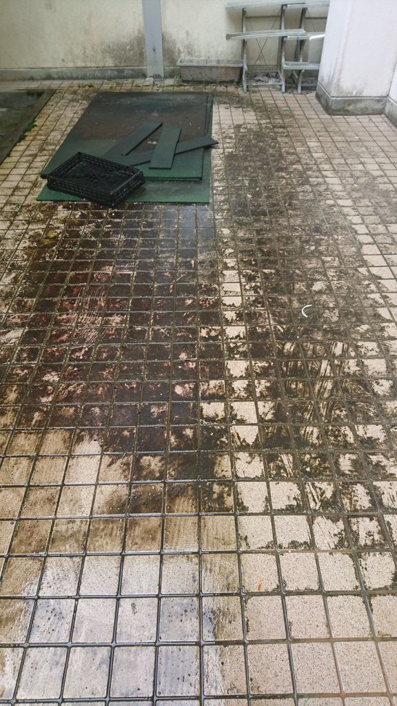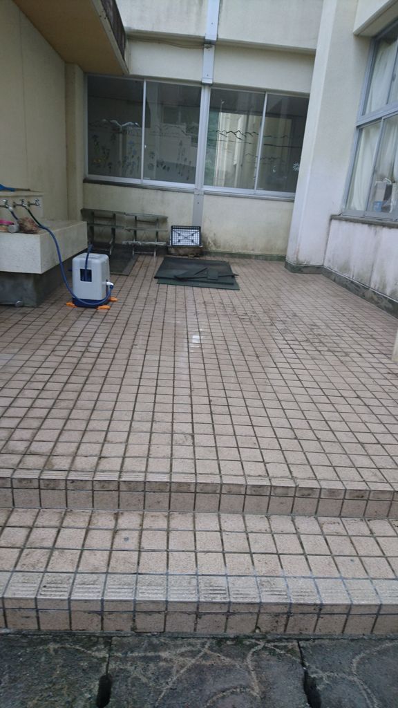 2017年09月27日 最後の掃除 万成小学校改修工事も、検査の時を迎えました。 今日は、最後の掃除に行きました。 今回は、外回り。 主に、タイルの掃除です。 修理に出した、高圧洗浄機で、一気に掃除。 こばりついた、苔が、あれよあれよと、 キレイに✨ 楽しいですね😊 今日は、雨が降っていたので、好都合です。 今日も一日楽しい仕事が出来ました😊 幸せ~😊💕