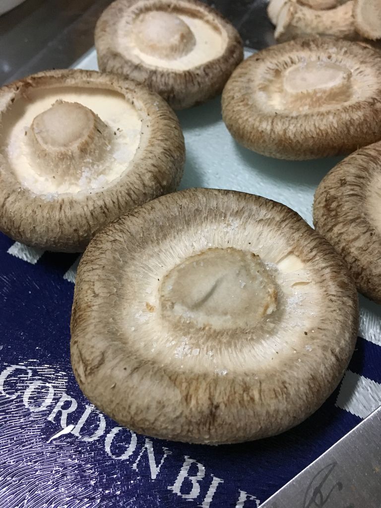 かさの部分だけにして、塩をまぶしてフライパン🍳