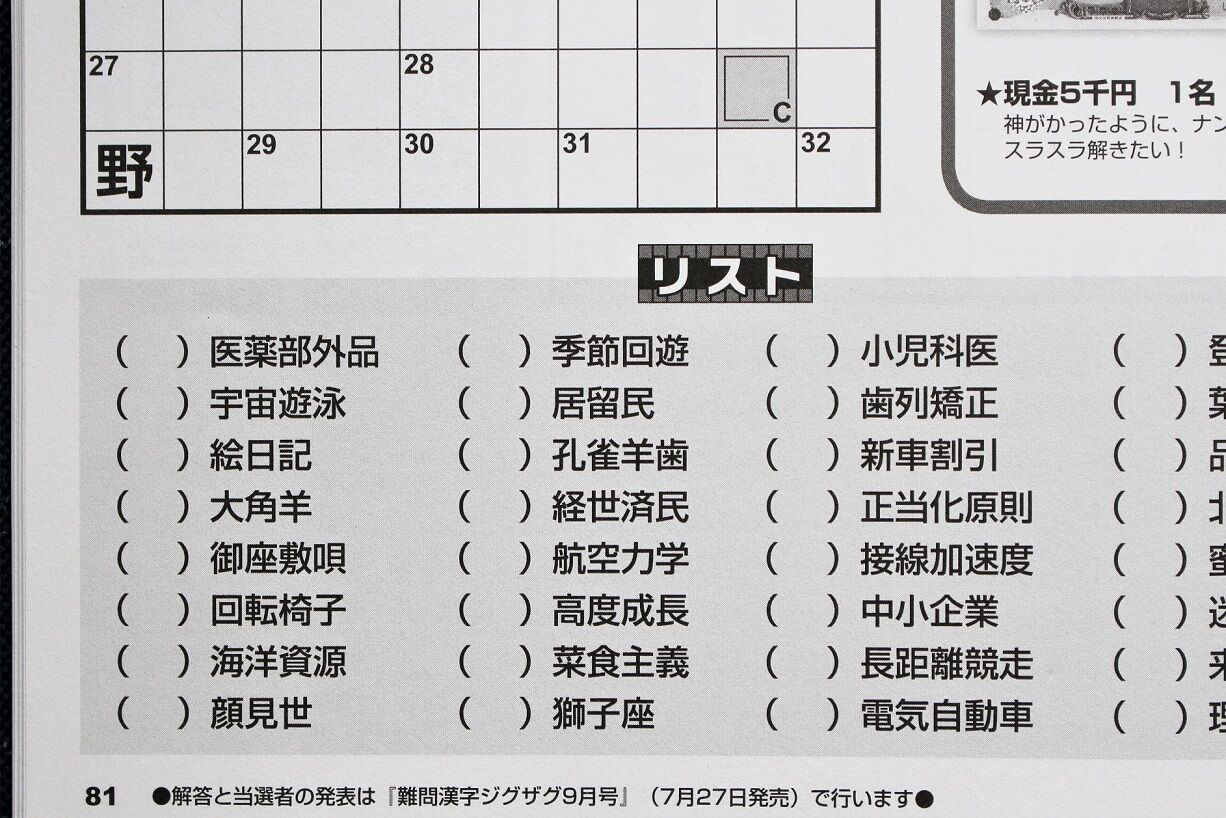 パズル面の番号は各熟語の冒頭であるのははっきりしているが、どの熟語の冒頭が入るのかが分からないのである。