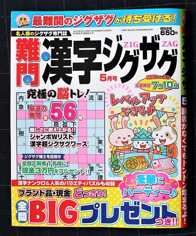 3月26日発売の「難問漢字ジグザグ 2020年5月号」に、私の投稿しているパズルが採用され記載される事になったのである。