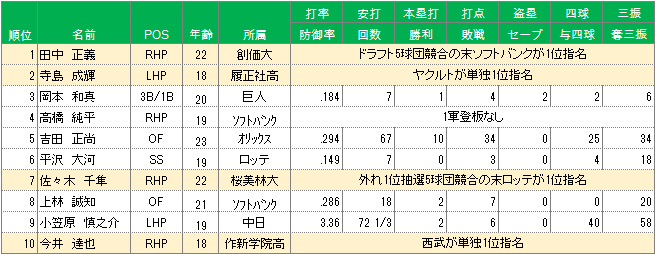 今年のルーキーの高卒BIG4は全員上位だろうな