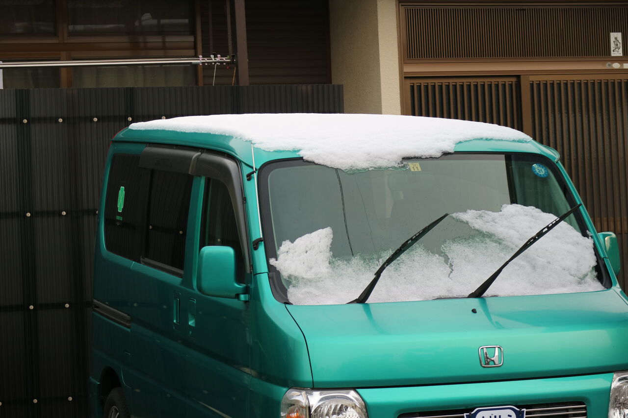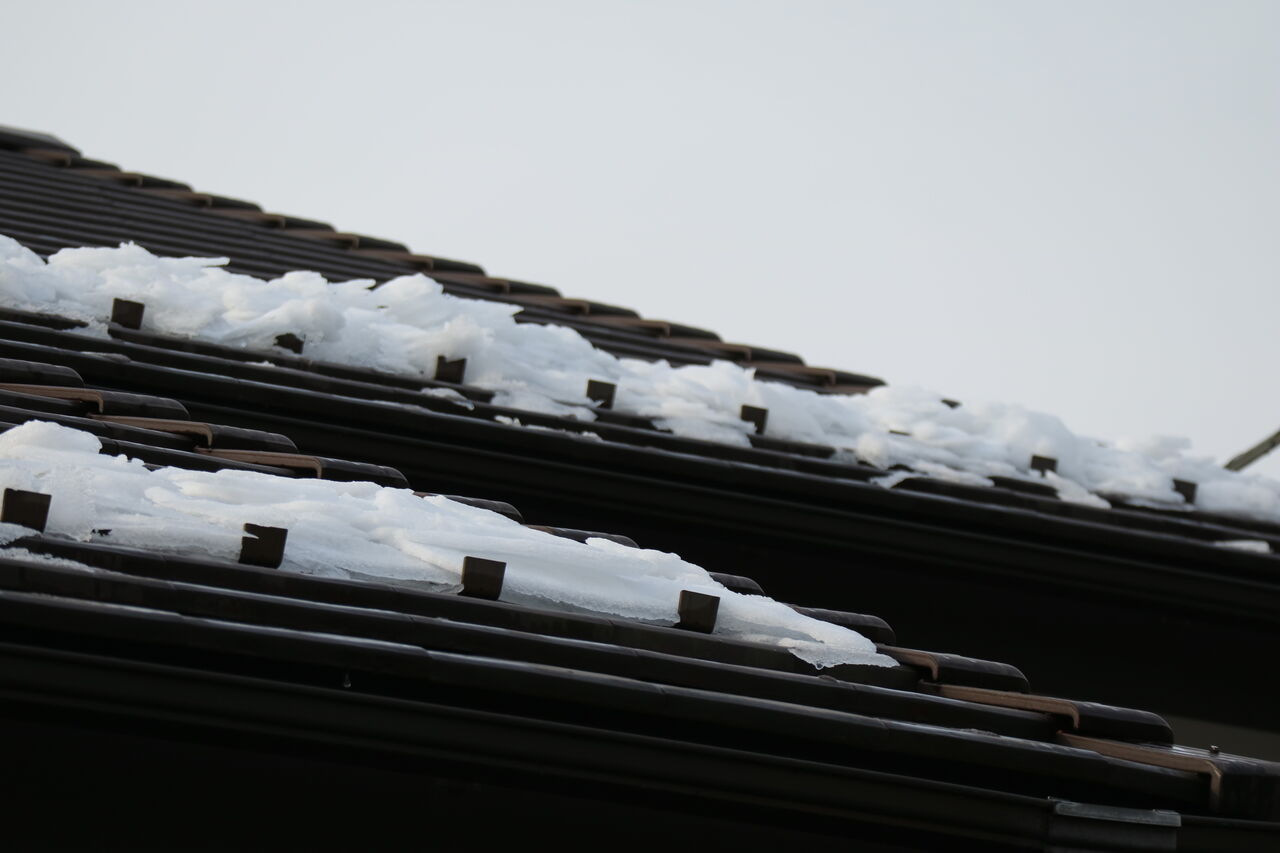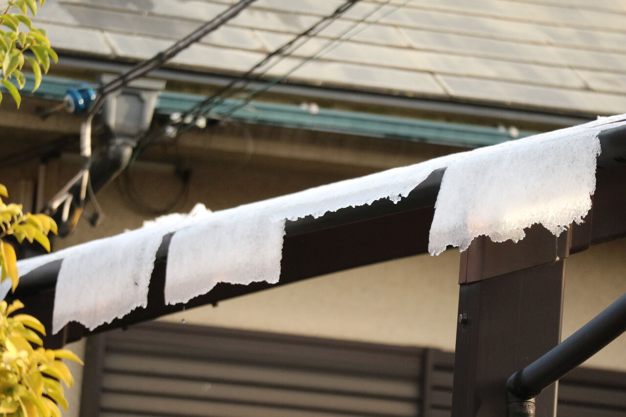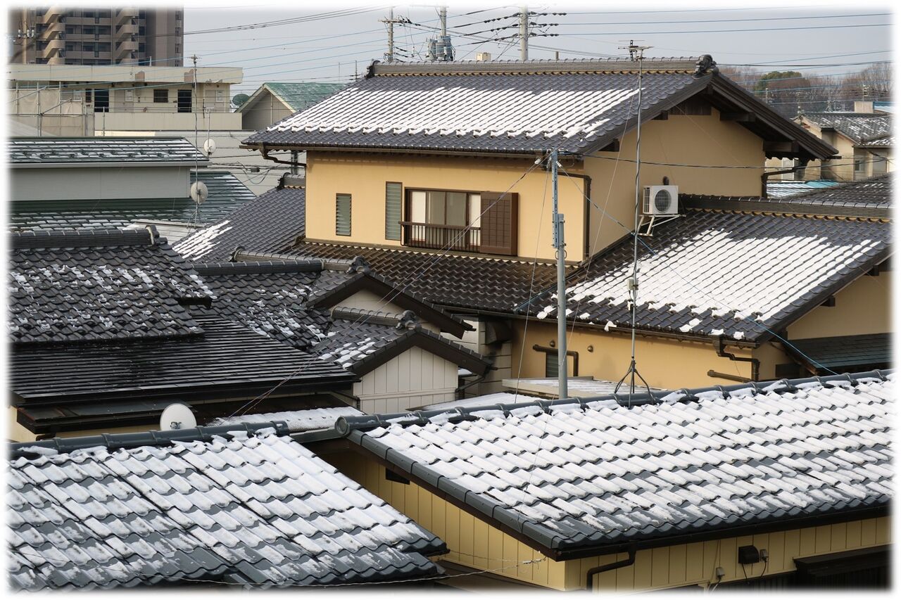 屋根に雪が積もっている、まあまあ降ったんだな!