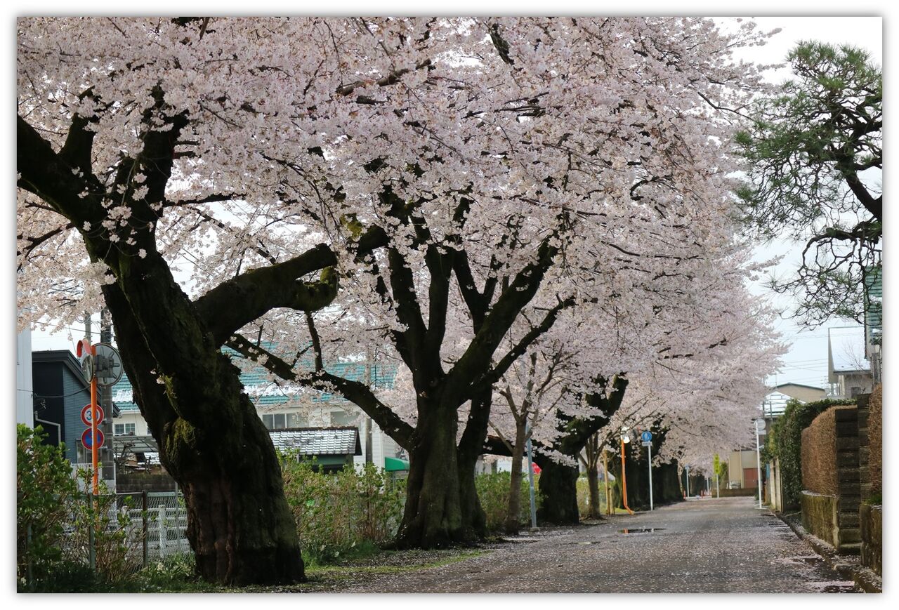 手前の桜が『船山さくら』満開、後方が『ソメイヨシノ』3分咲き位だ、人の気配はない。これはやはり、新型コロナウィルスの影響だろう、例年ぼんぼりが飾られ、露店でより桜見物に色を添えるのに、今年はさみしーい・・・・・