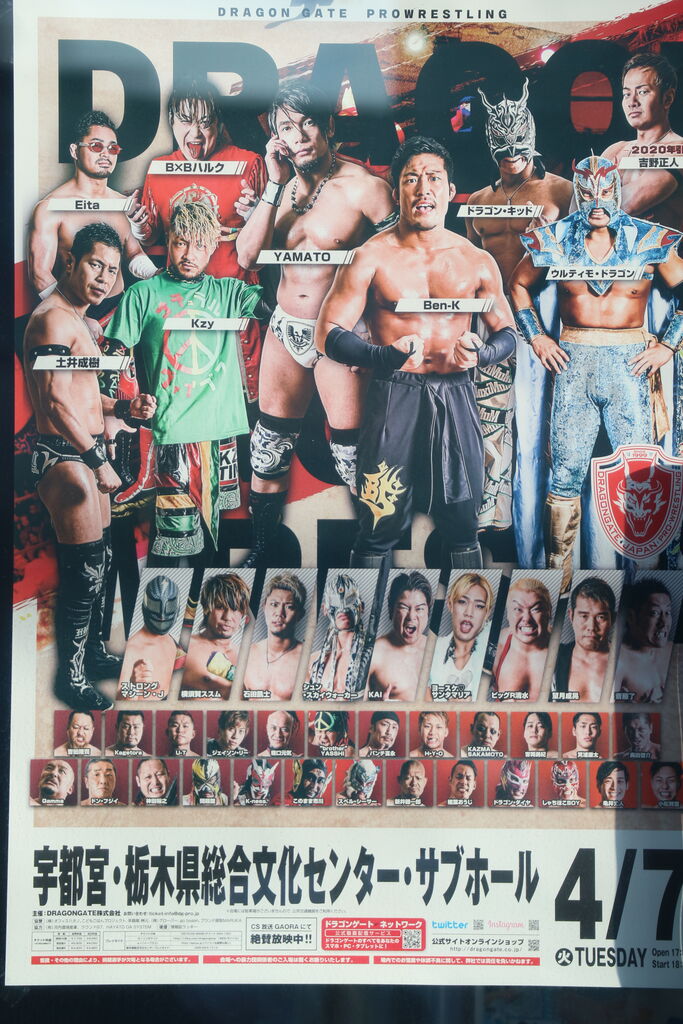 来月7日(火)宇都宮文化センターにて『ドラゴンゲート宇都宮大会』がえん自粛延長となった、せっかく耐震工事が終了し春一番のドラゲを応援できると思っていたのに非常に残念だ。しかしながら全世界に広がる新型コロナウィルスが少しでも早く収束するには正しい判断であろうと思う。医学者、科学者、製薬会社の頭脳で新薬が完成し、全世界が平和な社会になることを期待したい、そしてこの『ドラゲ宇都宮大会』が満員の会場ででサイコーのパフォーマンスを見せてくれることに期待したい!