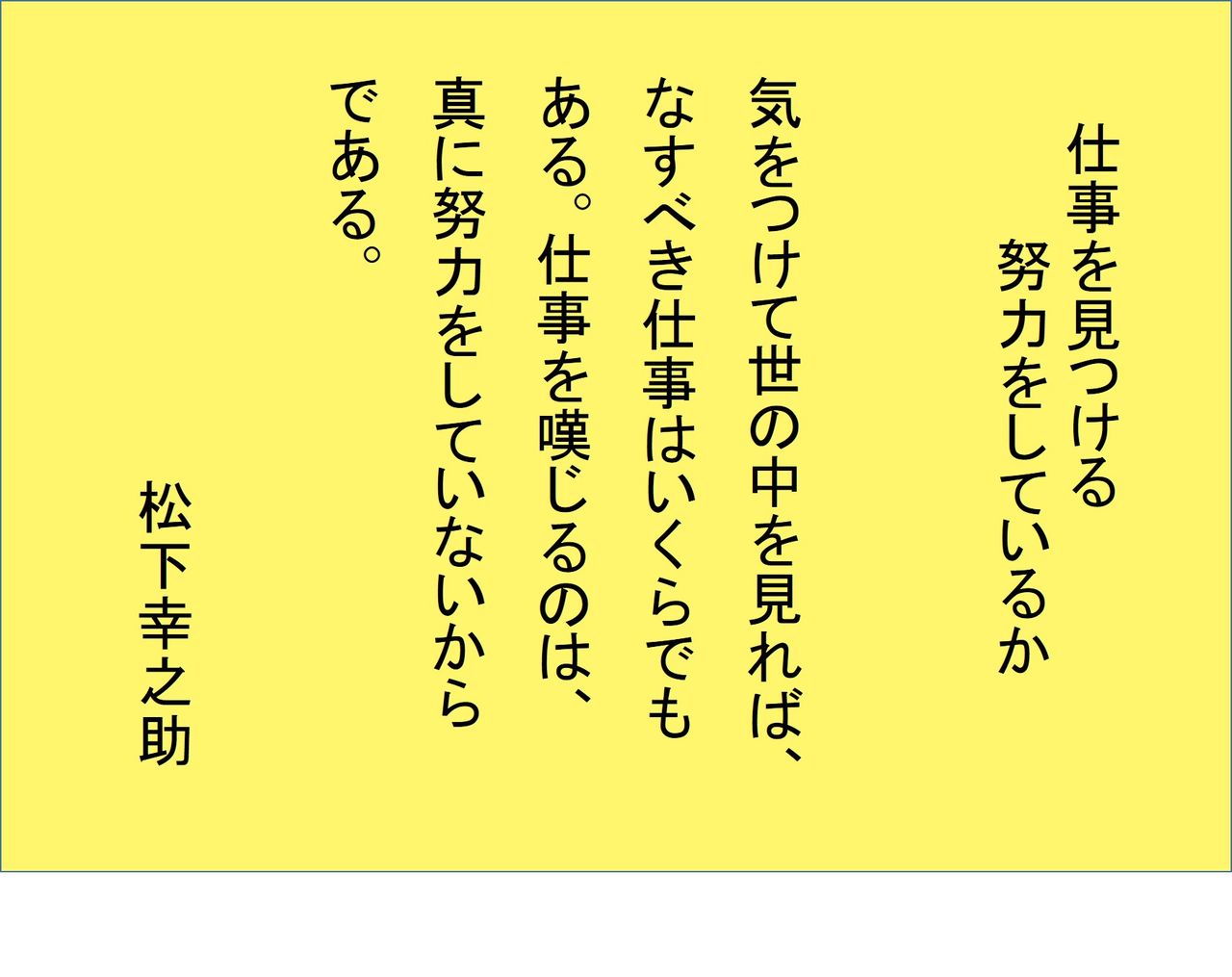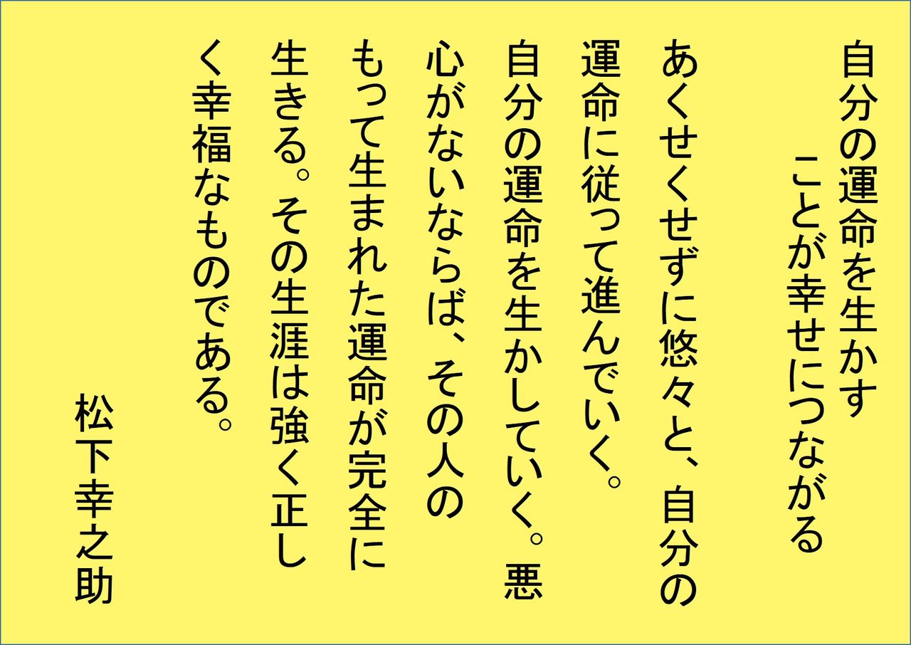 悪い時が過ぎれば、よい時は必ず来る。おしなべて、事を成す人は、必ず時の来るのを待つ。あせらずあわてず、静かに時の来るを待つ。時を待つ心は、春を待つ桜の姿といえよう。だが何もせずに待つ事は僥倖を待つに等しい。静かに春を待つ桜は、一瞬の休みもなく力を蓄えている。たくわえられた力がなければ、時が来ても事は成就しないであろう。 松下幸之助