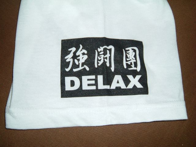 袖に"強闘團DELAX"のロゴが入ります。