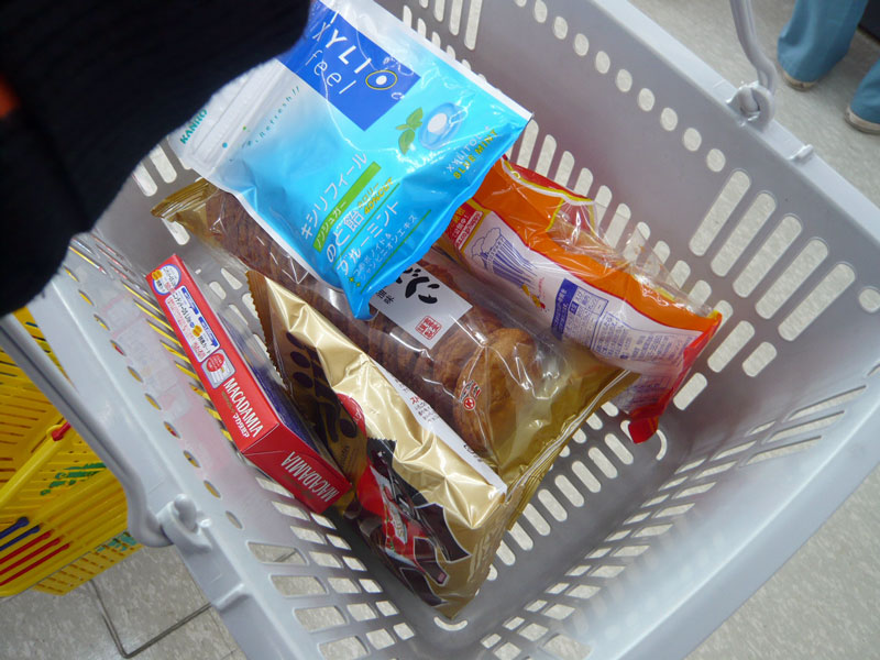 え〜っと、大好きなチョコとおせんべい、キャンディも入れてコレで良し