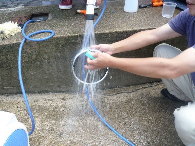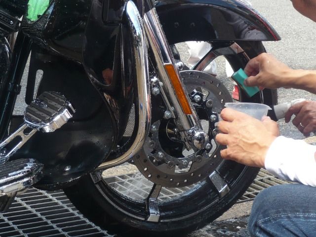ボディーやホイール、ヘッドライトトリムリングなど特に汚れが付き易い所は、手塗りによりコーティングを施工