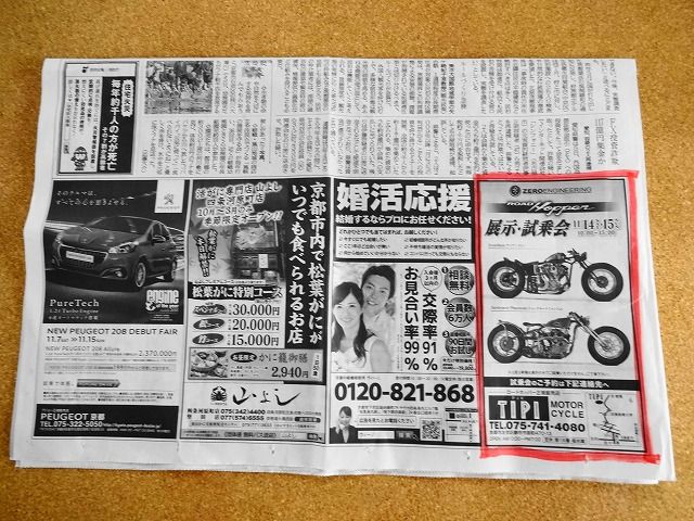 試乗会のお知らせが、今朝の京都新聞朝刊に掲載されました