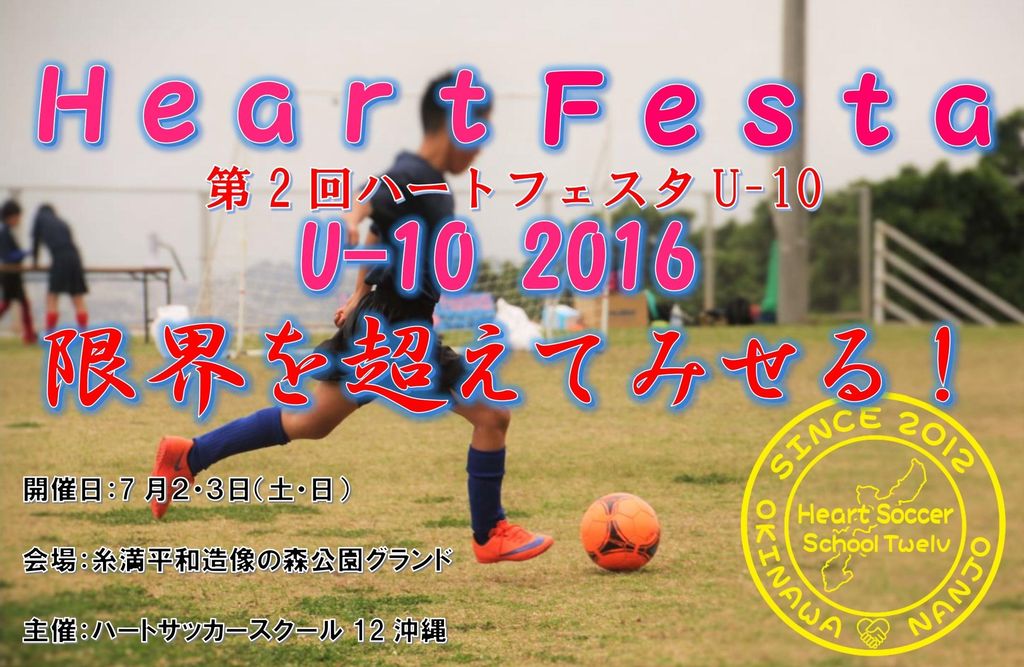 沖縄県南城市(なんじょうし)玉城に活動拠点を置き、島尻地区を対象とするサッカースクールのブログです。 Heart Soccer School Twelve ハートサッカースクールBlog http://blog.livedoor.jp/heartss12/ ハートサッカースクールHP http://heartss12.wix.com/okinawa ハートサッカースクールお問い合わせ heart.s.s.12@gmail.com TEL:080-6496-8010 (當山) FAX:(098) 993-7559